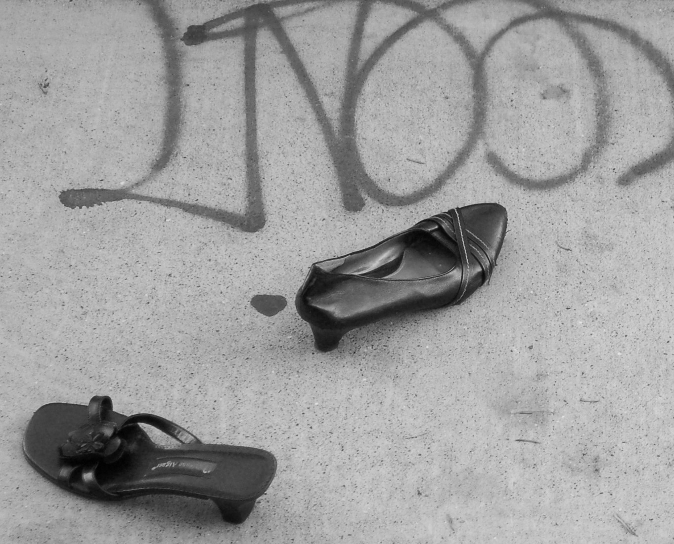 | These were on the sidewalk BEFORE the clock struck 12. ("Left and Right Shoes") |